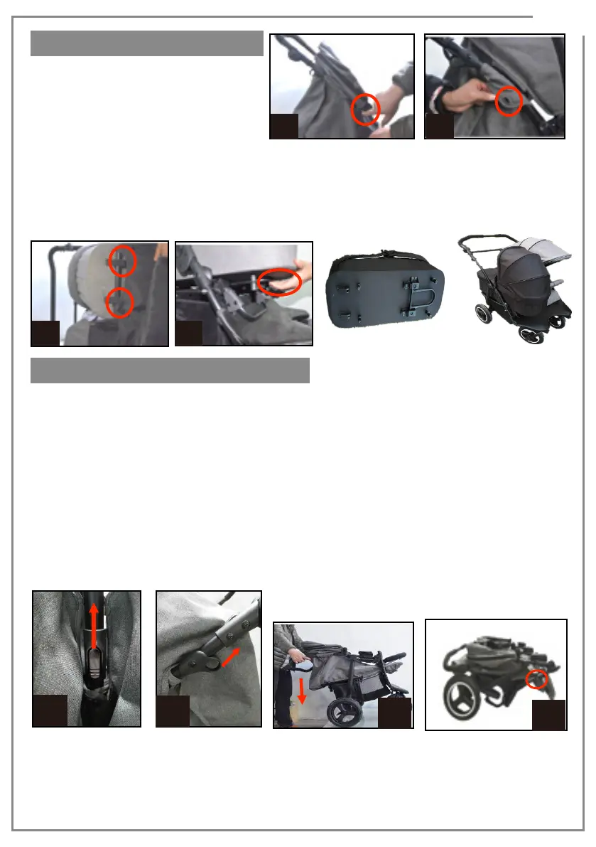 Tryck ner handtaget och fortsätt denna åtgärd tills barnvagnen är helt hopvikt. (15c)