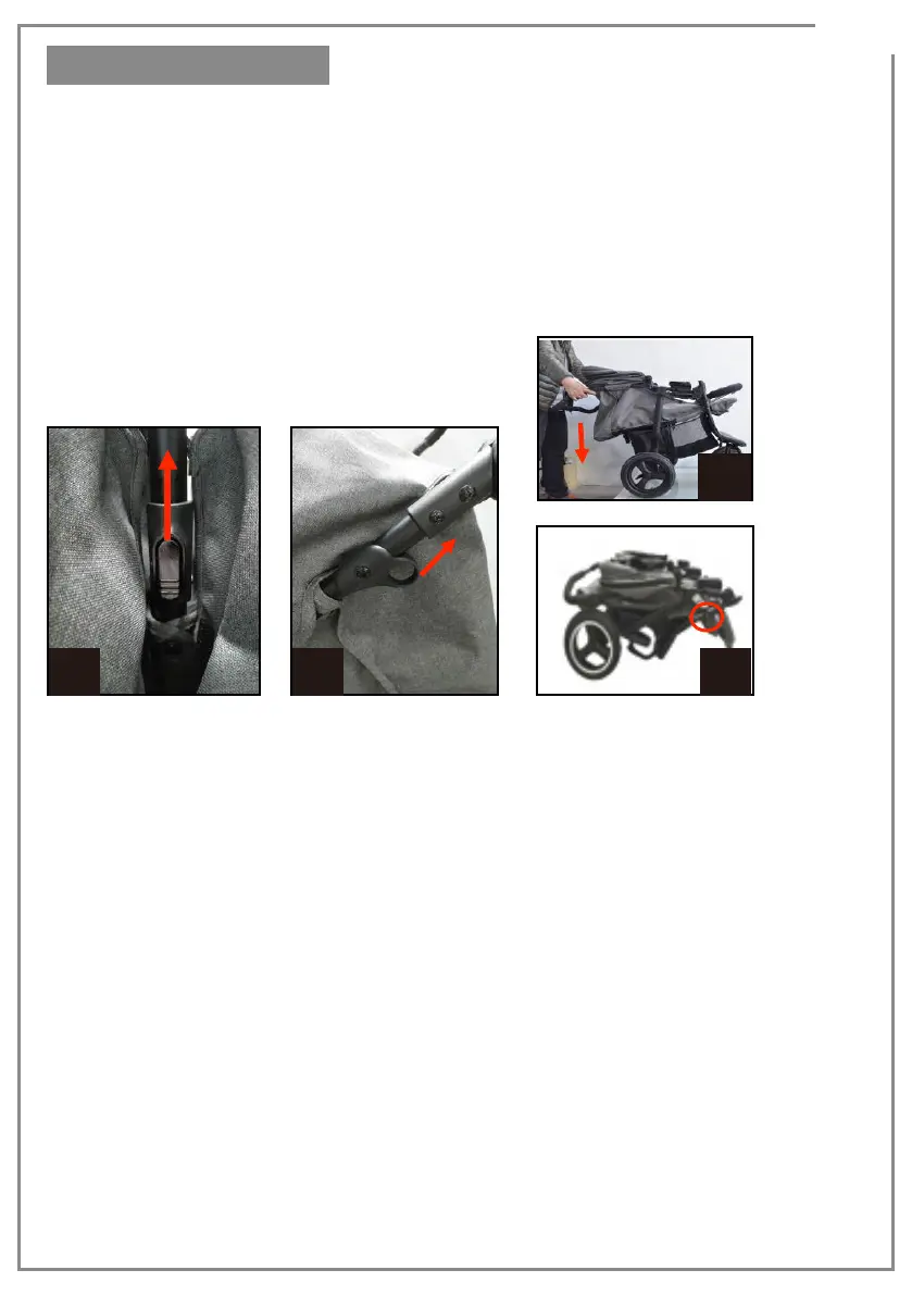 • Never attempt to fold the stroller with child inside.