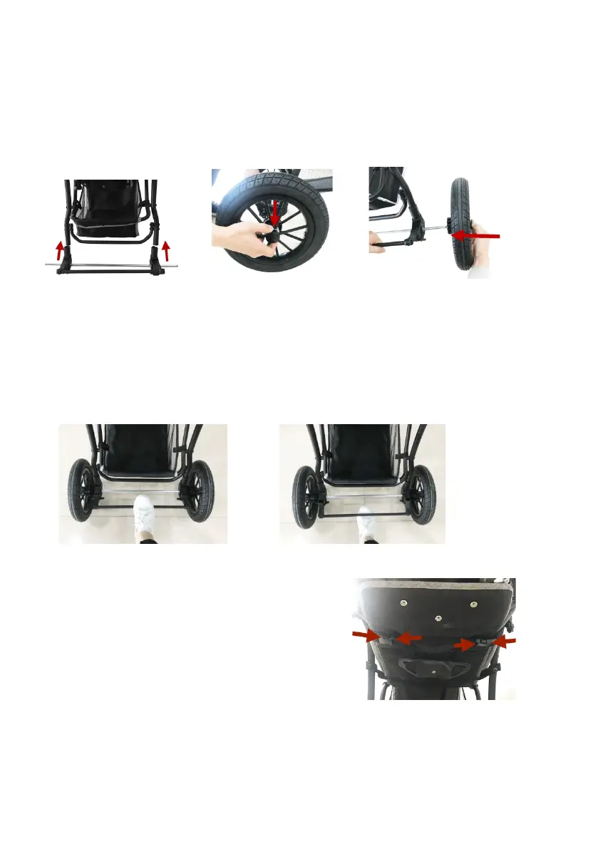 Insert the rear axle onto the two ends of the frame and push the axle