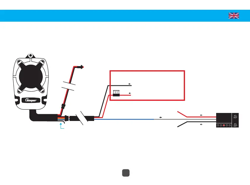 For the perimetry option, it is necessary to connect the blue perimetry wire (-) to the perimetry of the vehicle. If an opening is opened,