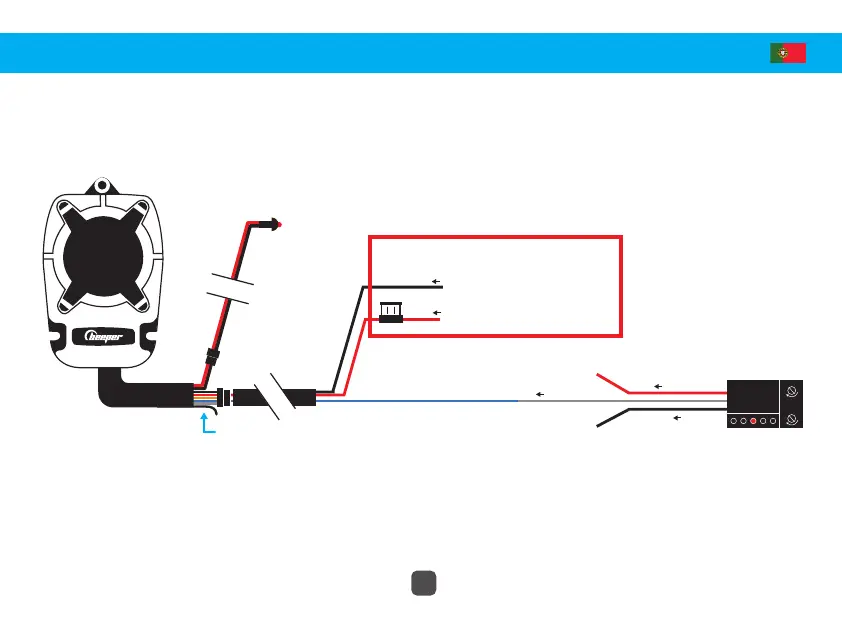 Para a opção de perimetria é necessário conectar o fio de perimetria azul (-) na perimetria do veículo. Se uma abertura for aberta, o