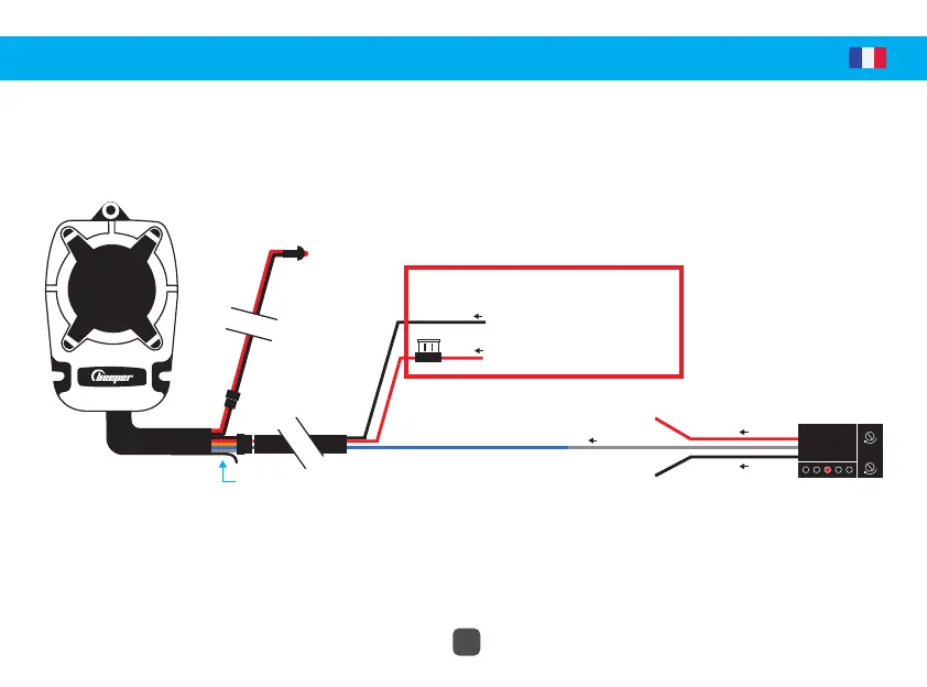 Pour l’option pérmiétrie, il est nécéssaire de connecter le fil bleu périmétrie (-) à la périmétrie du véhicule. En cas d’ouverture d’un