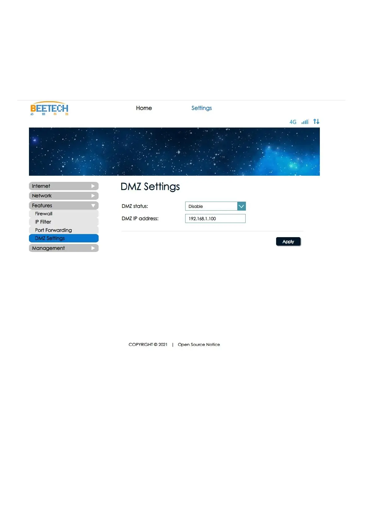 IP Address: Give a static IP address to the DMZ Host when Enabled radio button is checked. Be