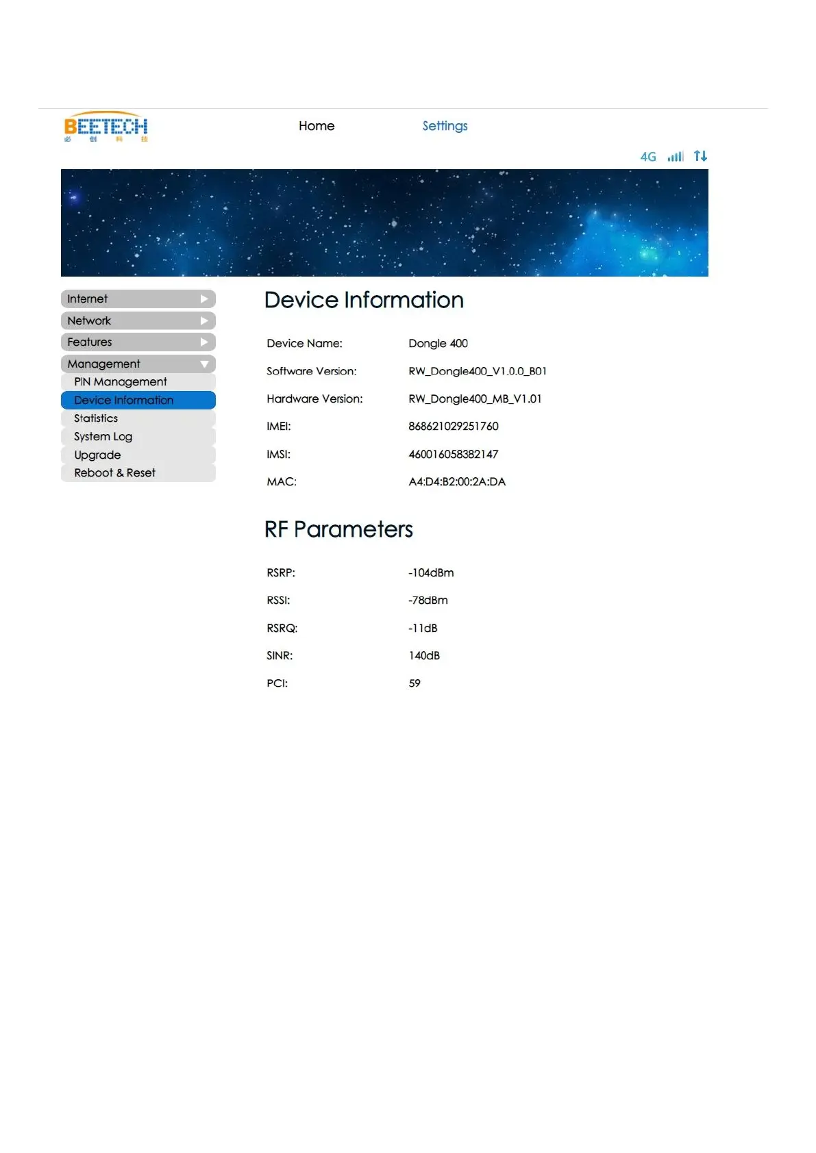 IMEI: The unique identification number that is used to identify the 4G-LTE module.
