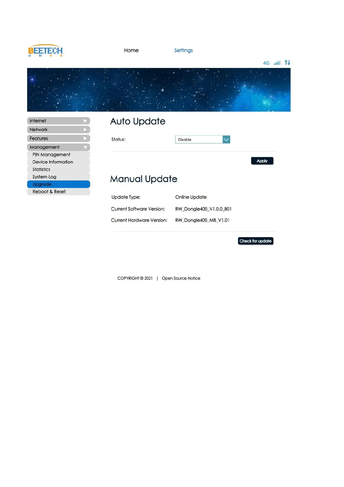 Click the button Check for update to confirm if there is an update available. It will guide you to