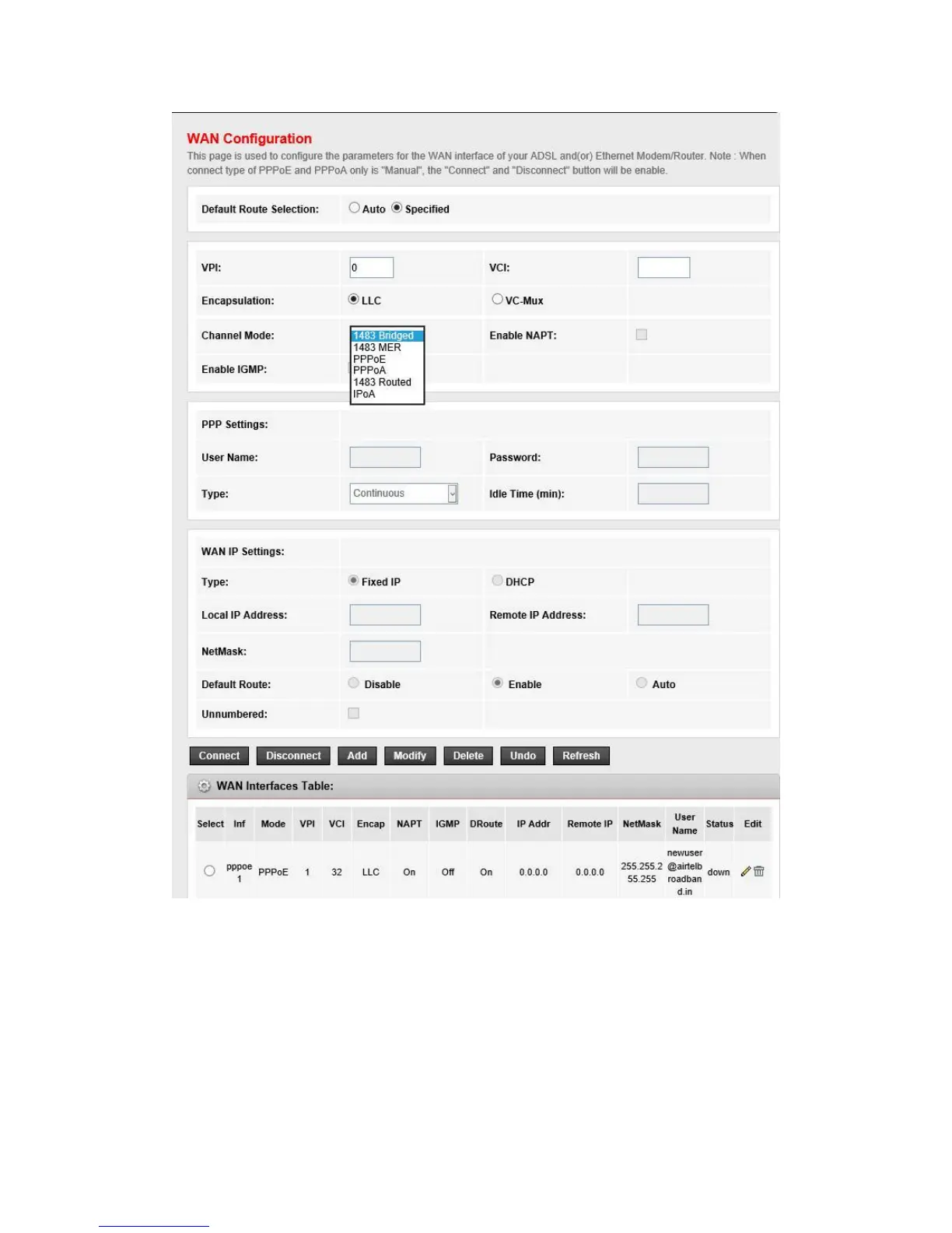AAL5 encapsulation mode for the PVC channel: LLC/SNAP or VC-mux