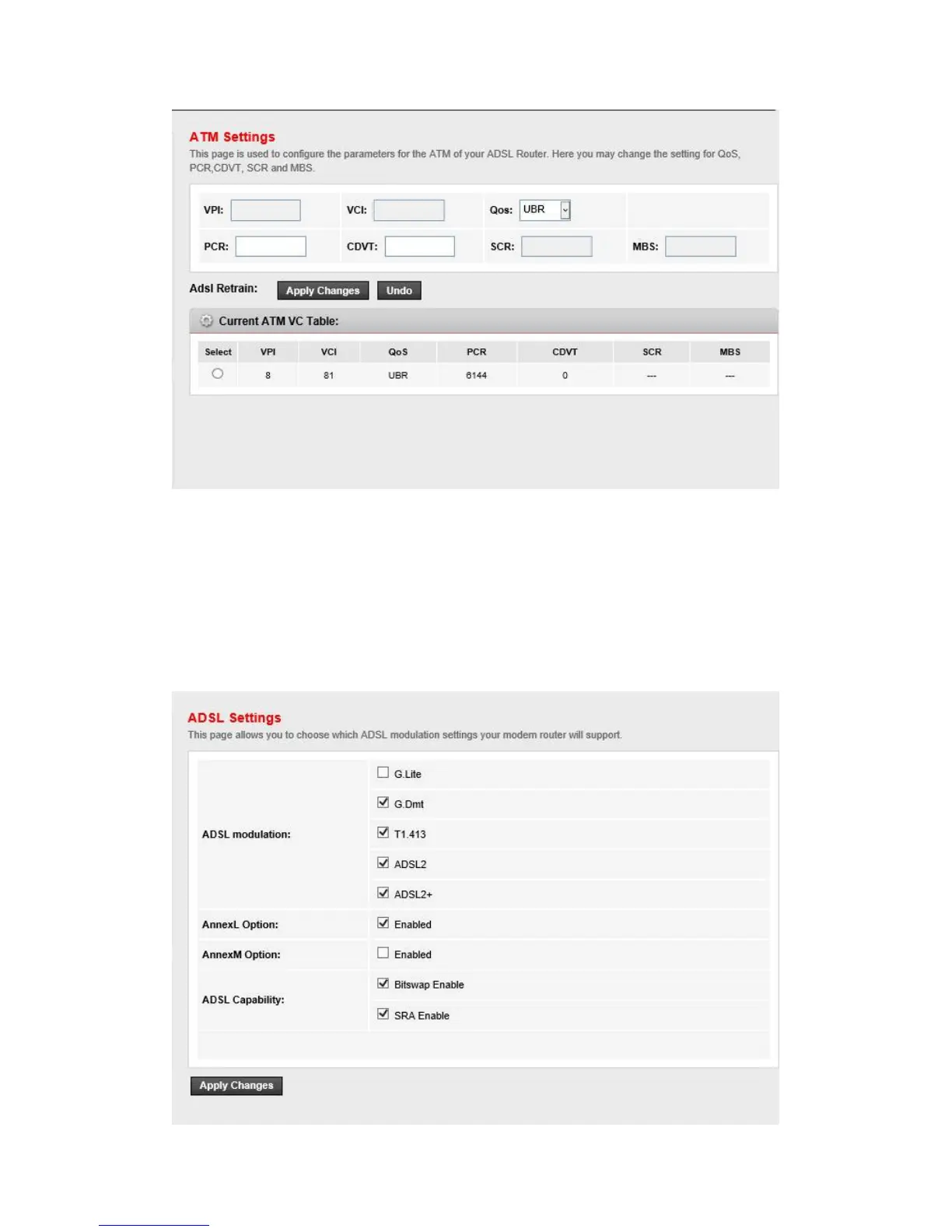 Go to Setup->WAN->ADSL page; you can configure which ADSL modulation of your modem