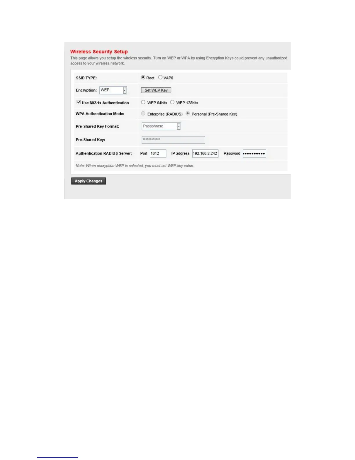 There are also two WPA Authentication mode, it can be either Enterprise (RADUIS) or Personal