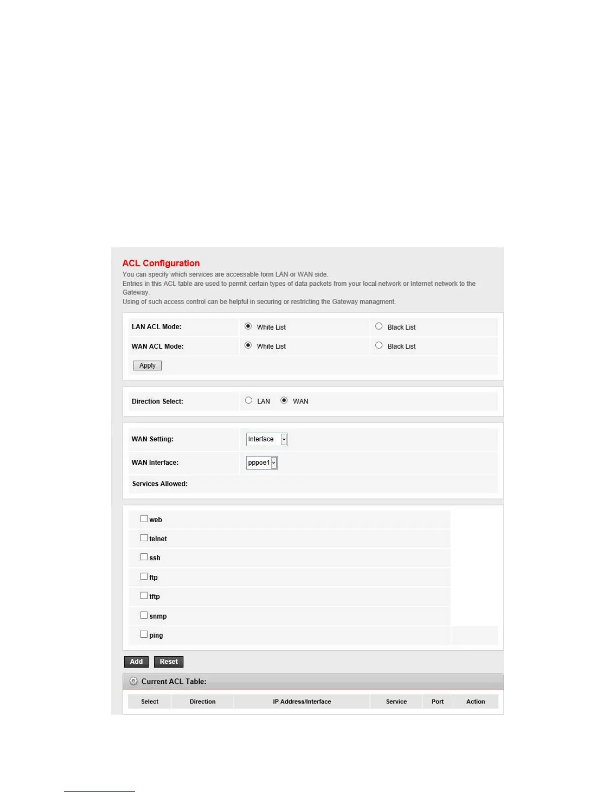 Service Allowed (LAN side)