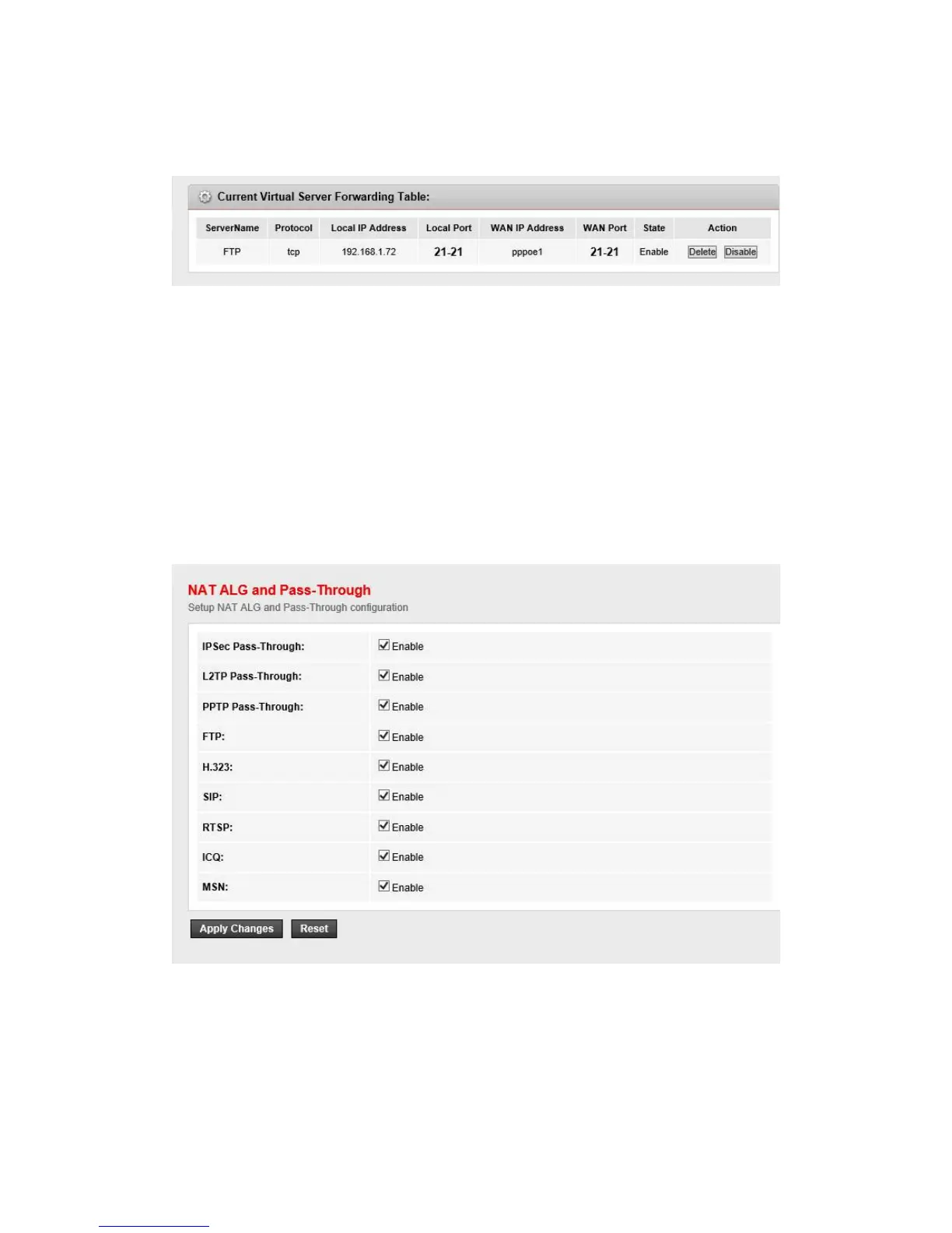 The router supports several NAT ALG and pass-Through function.