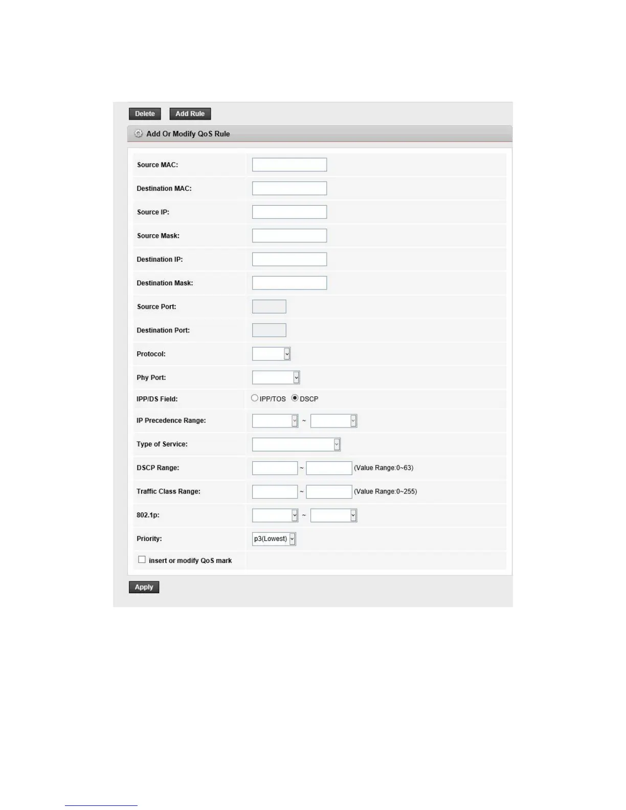 ,you should configure the QoS rule. Press the add rule button to add a new rule.