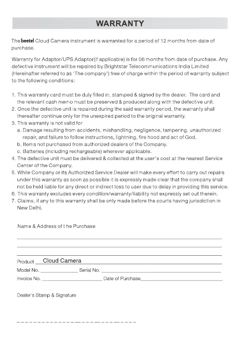 BEETEL CC2 - WARRANTY