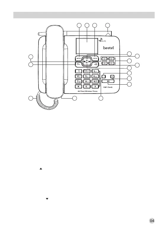 In phonebook list/missed calls list / received calls list/ dialled calls list: Press to scroll up
