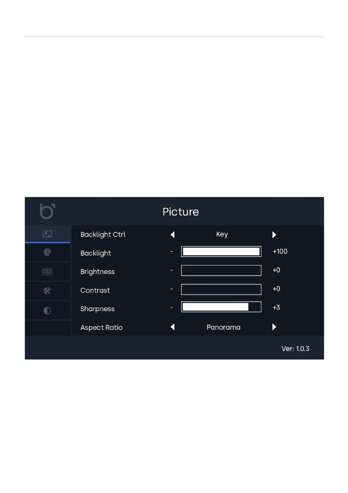 Adjust picture brightness. This value can only be changed if the picture mode has been set to “User”.