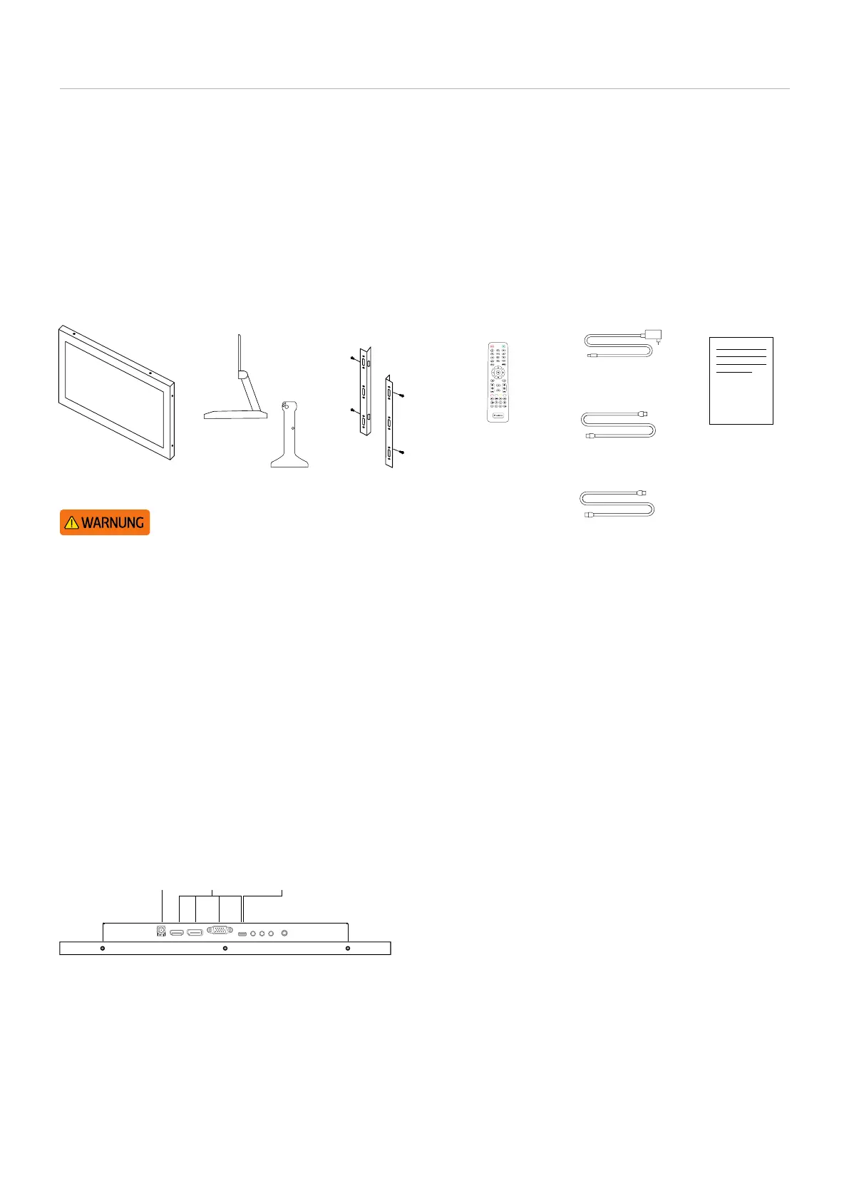 Öffnen Sie die Verpackung des Monitors und überprüfen Sie, ob alle Teile vorhanden sind. Der Inhalt variiert aufgrund der
