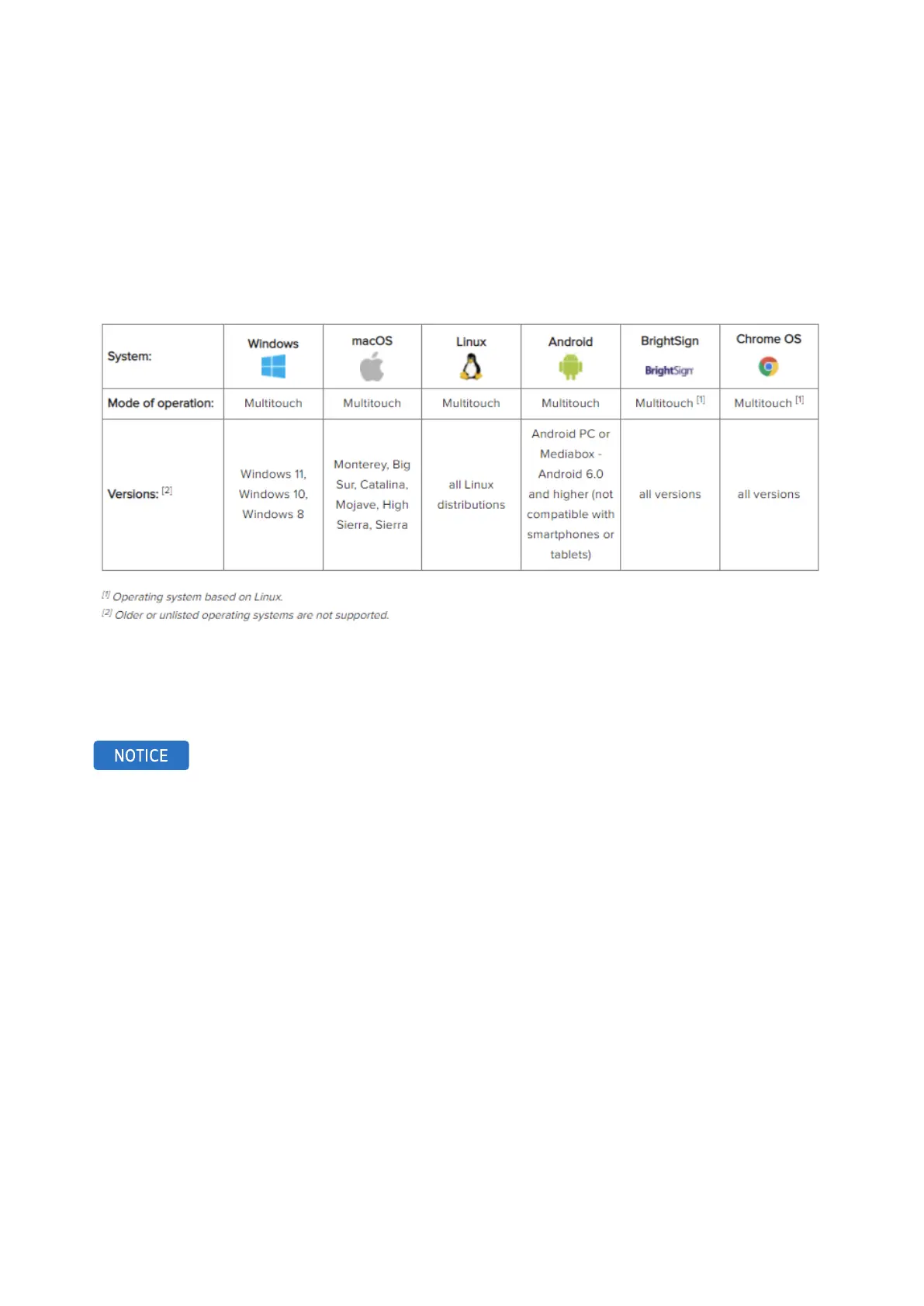will find an overview of our supported operating systems, indicating whether a driver is required and whether the operating