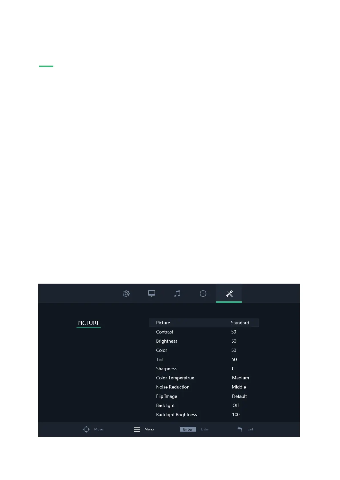 Adjust picture tint. This value can only be changed if the picture mode has been set to "User".