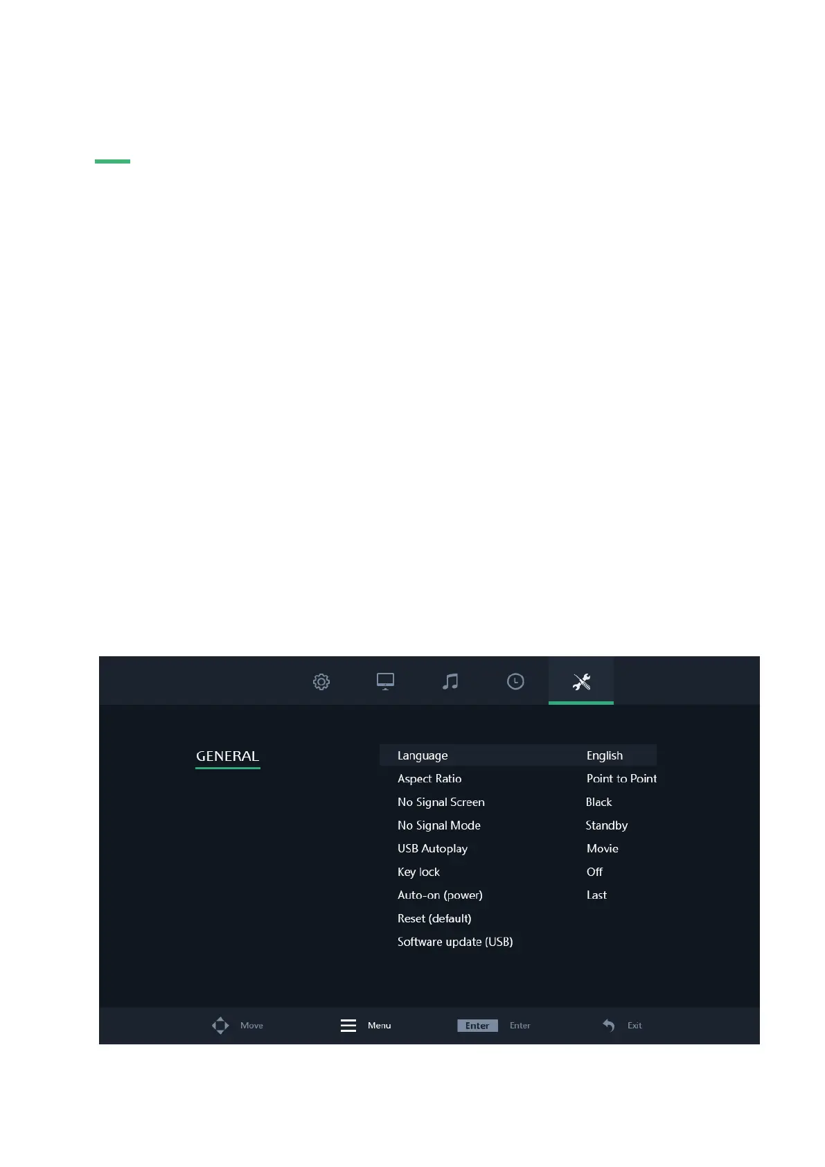 Turn on/off the auto-on (power). When this setting is activated the monitor will turn on automatically when it receives