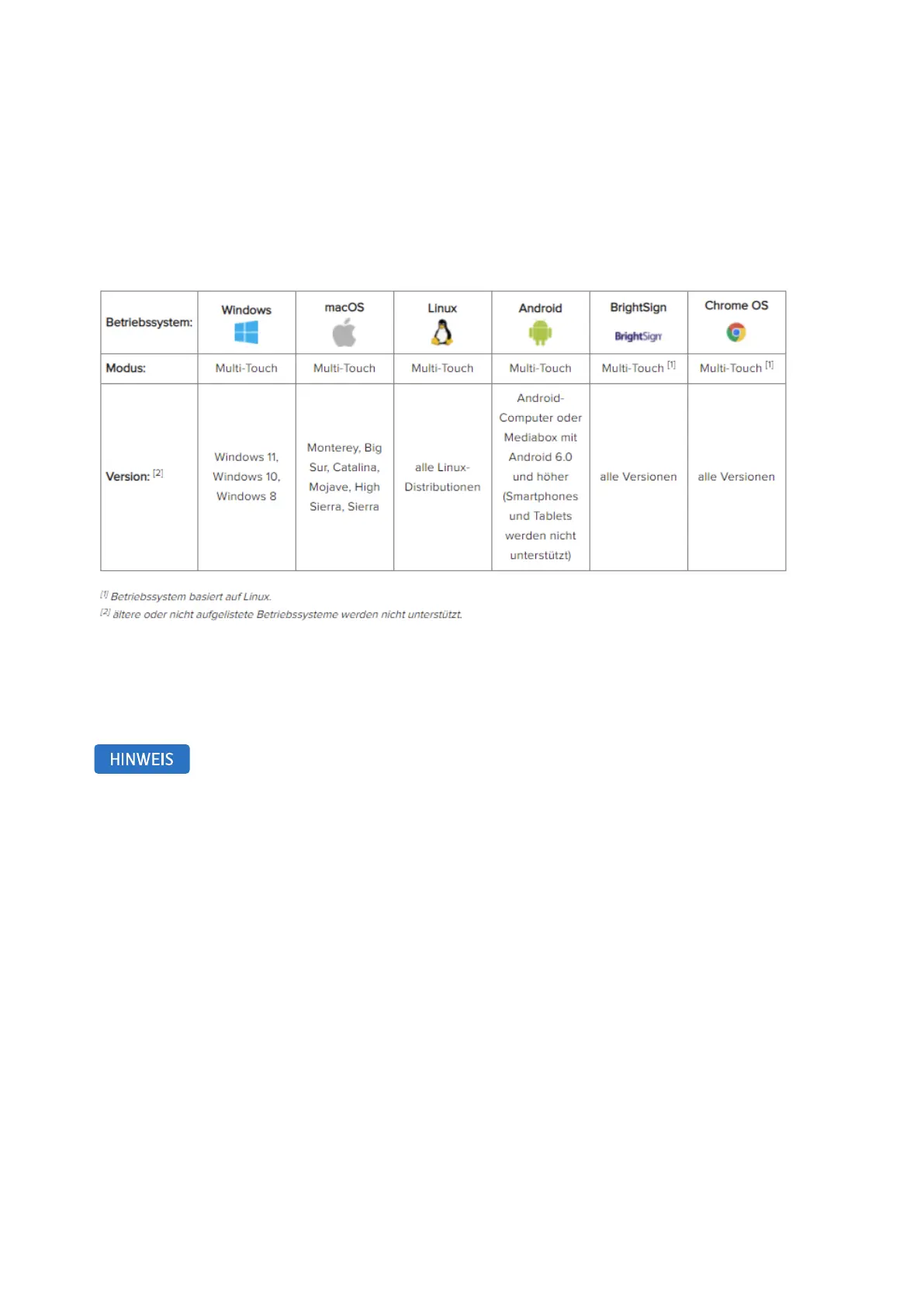 eines Treibers oder die Durchführung einer Kalibrierung ist nicht erforderlich, solange der Touchscreen-Monitor in seiner