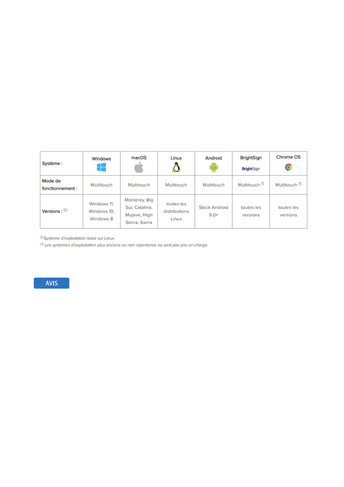 lorsque la résolution native du moniteur est utilisée. Vous trouverez ci-dessous un aperçu de tous les systèmes d'exploitation