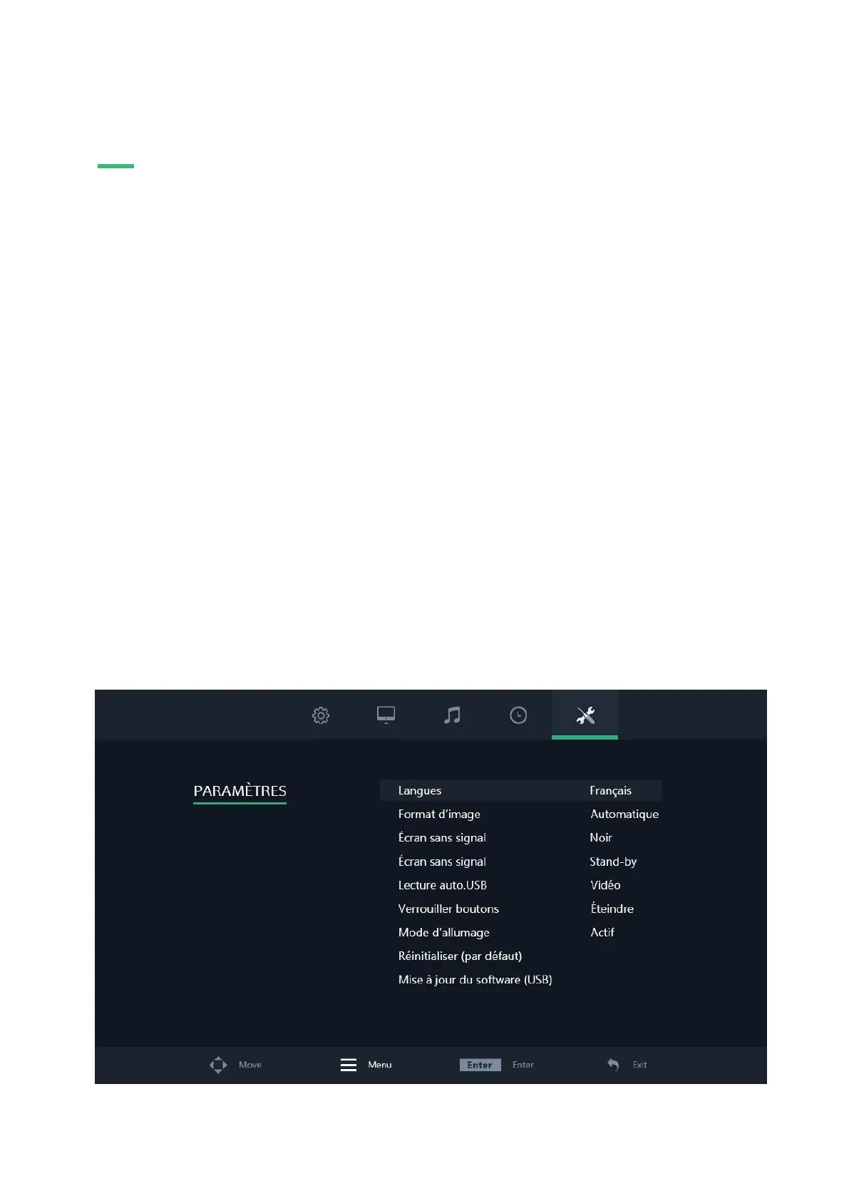 Définir la langue du menu. La langue par défaut est ANGLAIS (US: English)