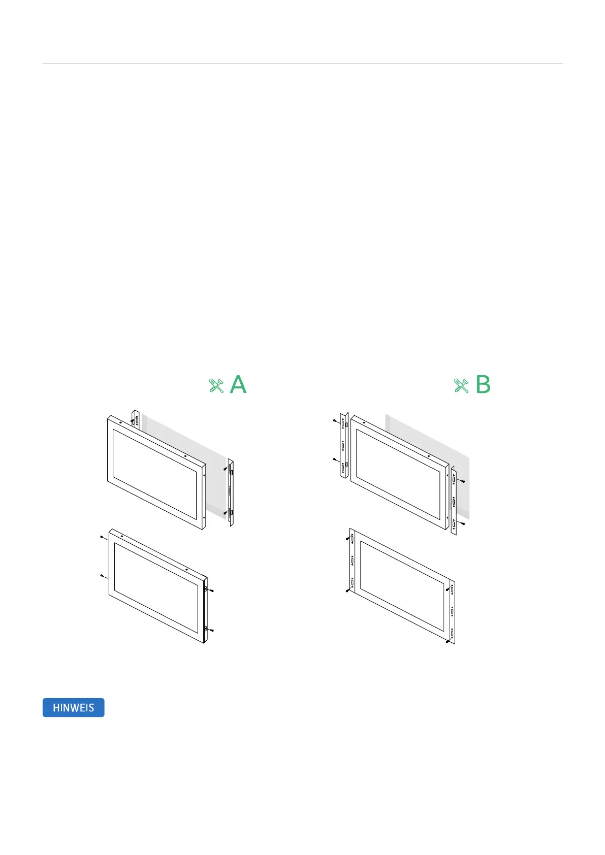 Montagewinkel auf zwei Arten befestigen, je nachdem ob Sie den Monitor einlassen oder von vorne verschrauben wollen. Hierzu