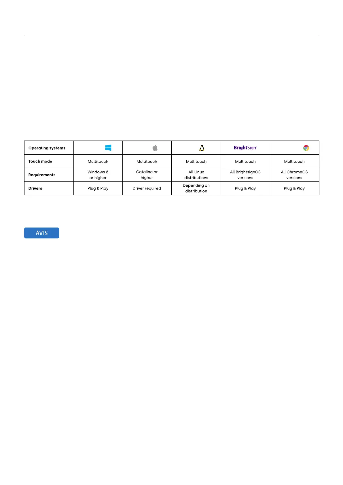 La plupart des systèmes d’exploitation sont pris en charge en mode “plug and play” et ne nécessitent aucun pilote ni étalonnage