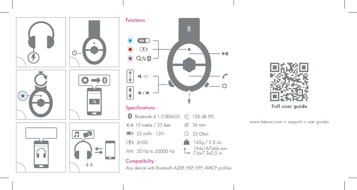 BeeWi BBH102 - Bluetooth Stereo Headphones BBH102 Details; Product Functions; Technical Specifications; Device Compatibility
