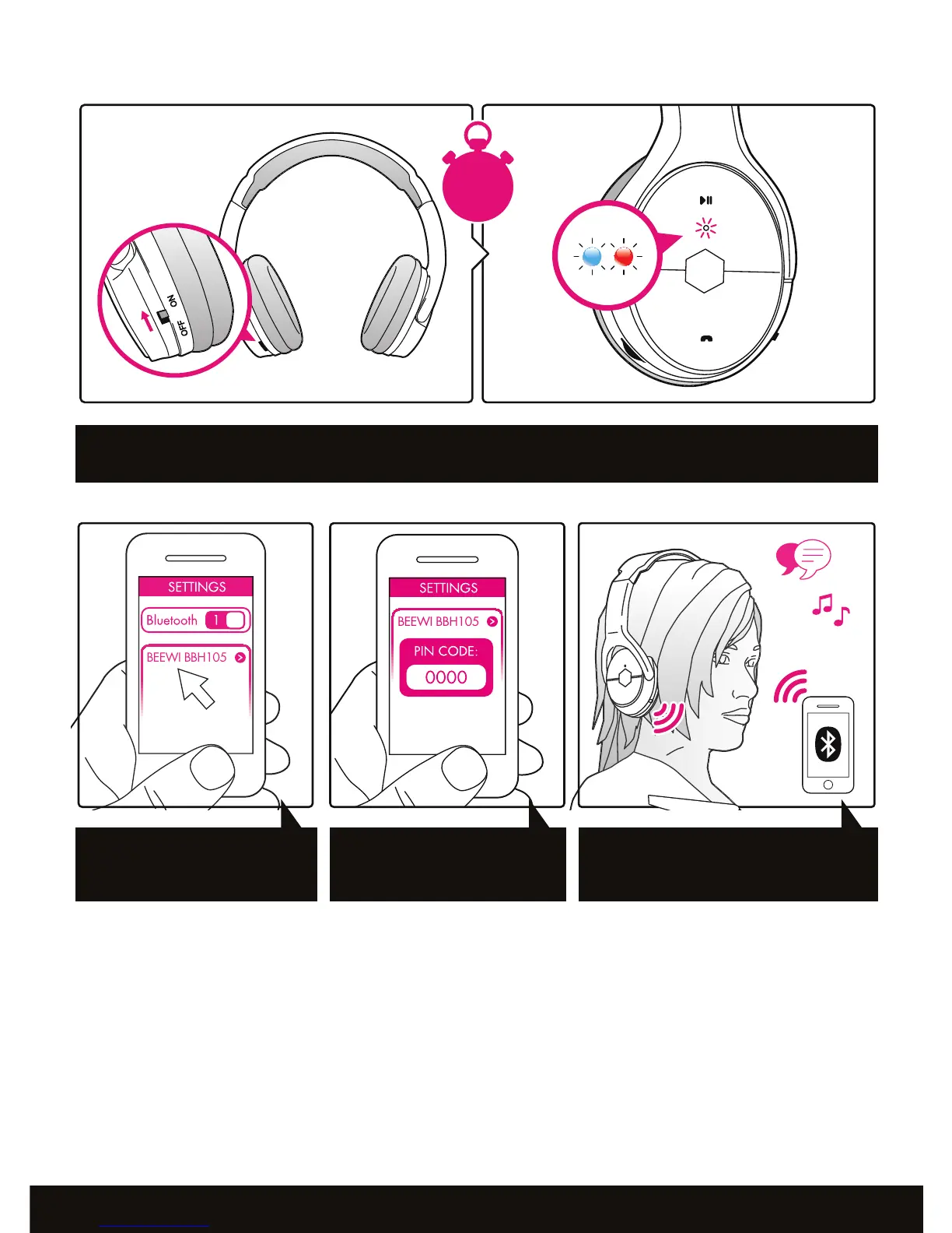BeeWi BBH105 - Pairing BeeWi BBH105 Headphones; Entering Pairing Mode; Connecting via Bluetooth