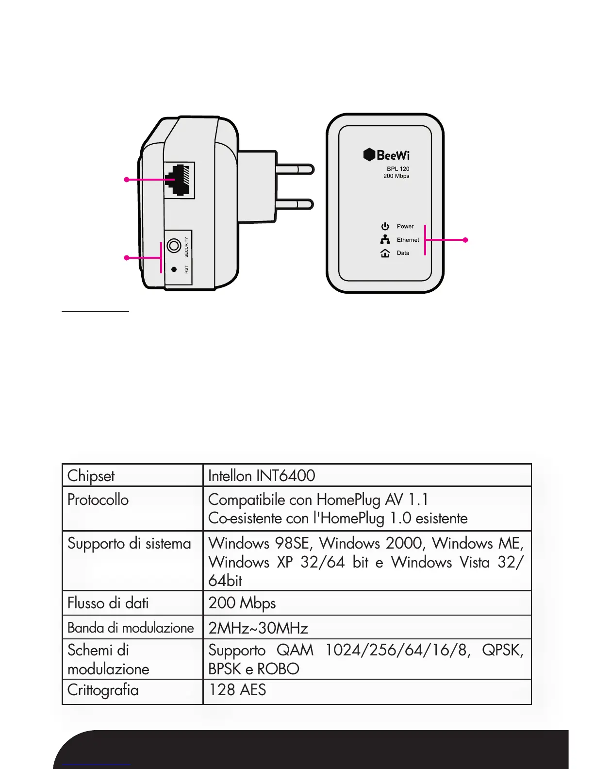 Ci sono 3 LED sul pannello frontale per indicare lo status dell'adattatore.