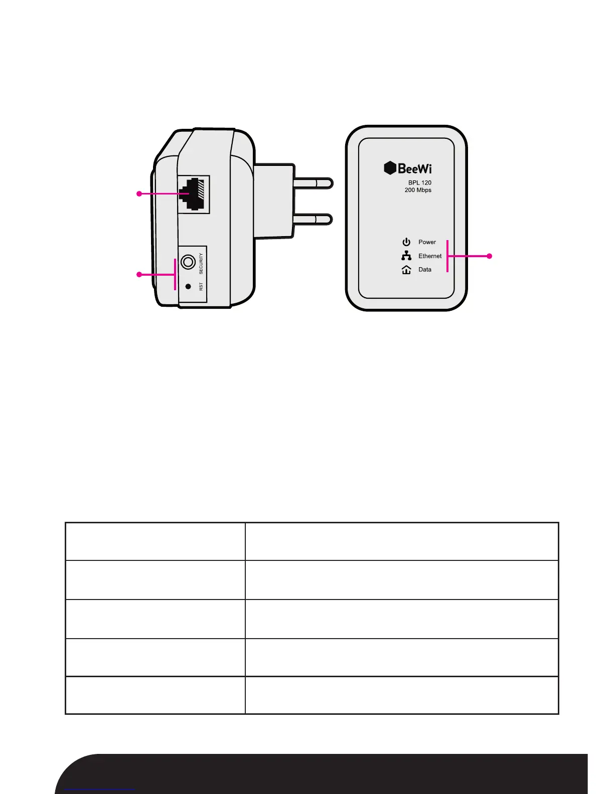 - Power (groen) : staat aan wanneer de adapter werkt