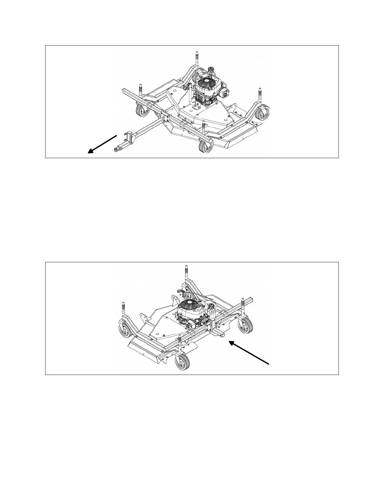 To attach the mower to be pushed in front of the ATV/UTV do the following:
