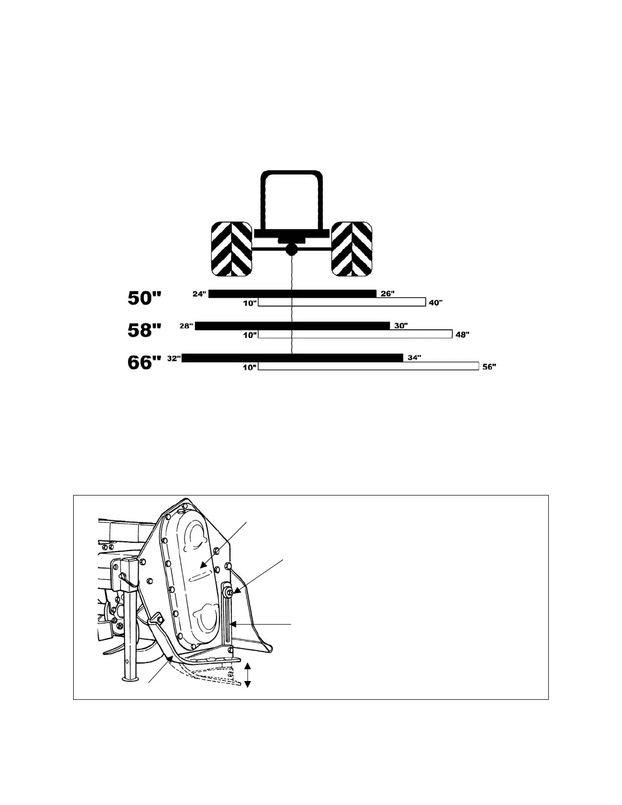 The drawing below represents the Till-Rite T50 tiller’s right side-shift capabilities.
