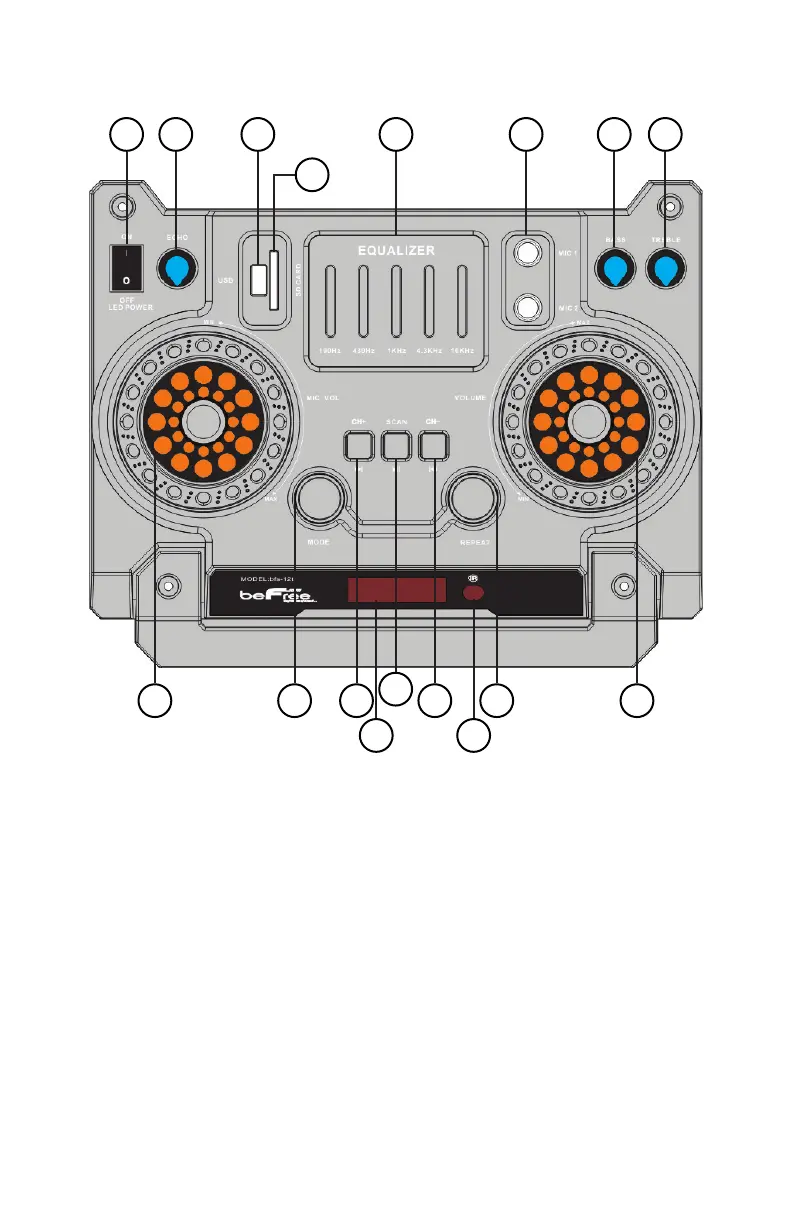 8. Treble knob, controls the treble effect