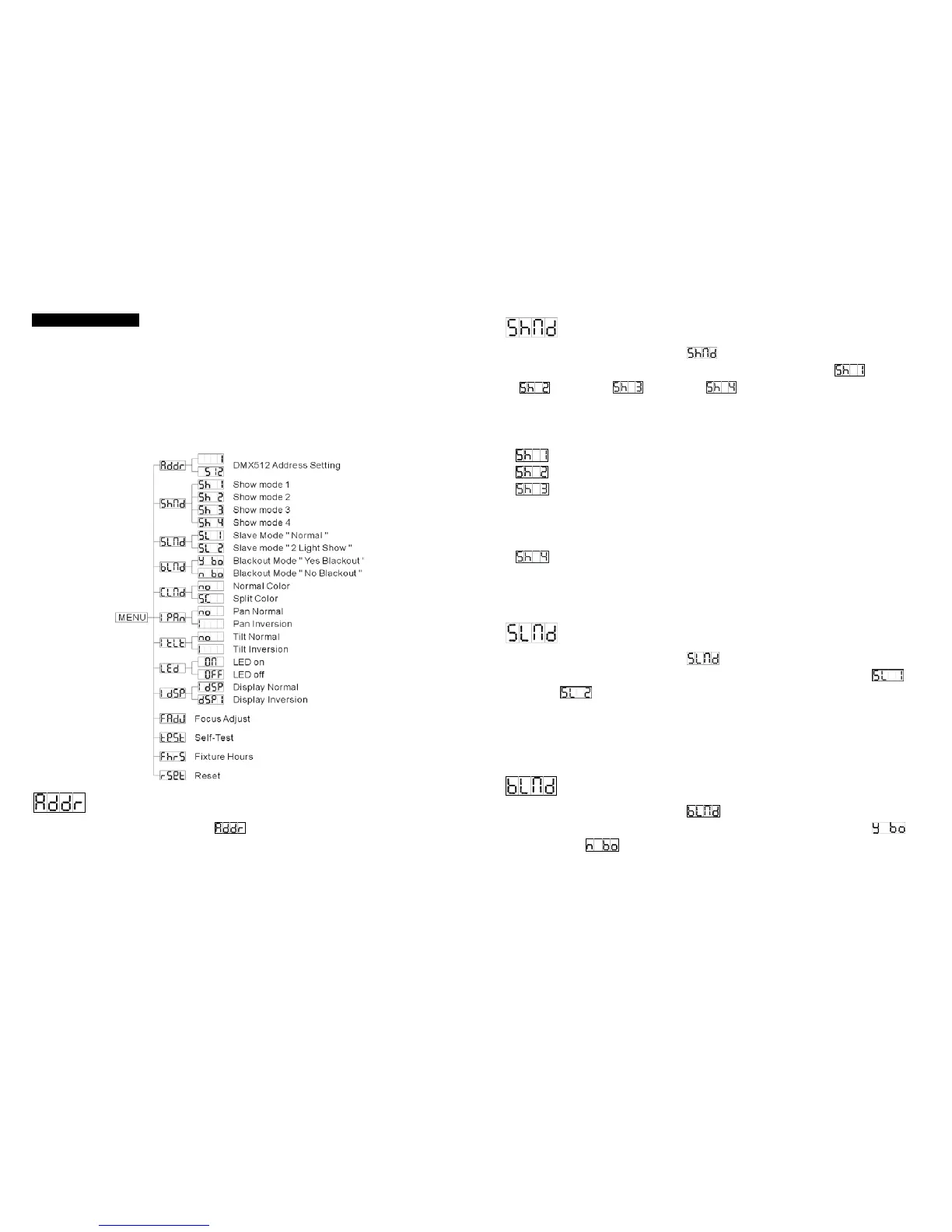 button and the display will blink. Use DOWN and UP button to change the DMX512 address.