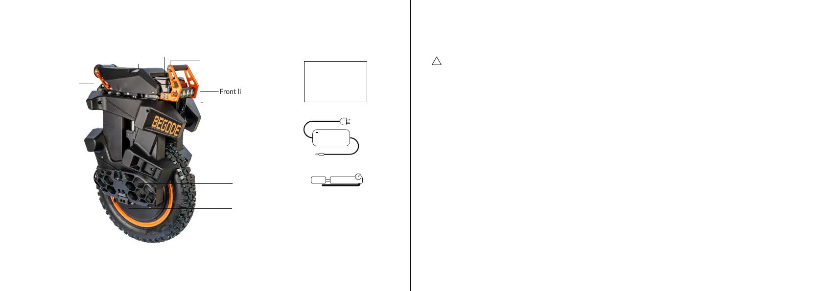 WARNING! Tilng the unicycle forwards or backwards will cause the wheel to move forwards or backwards