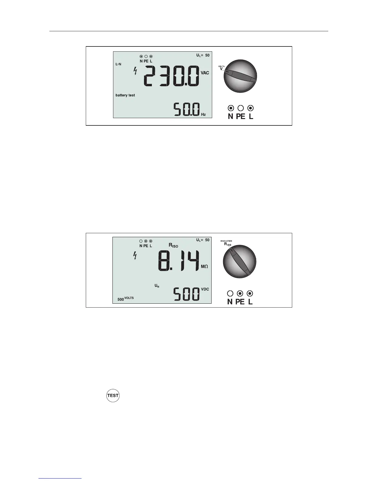 Note: Testing is inhibited if voltage is detected in the line.