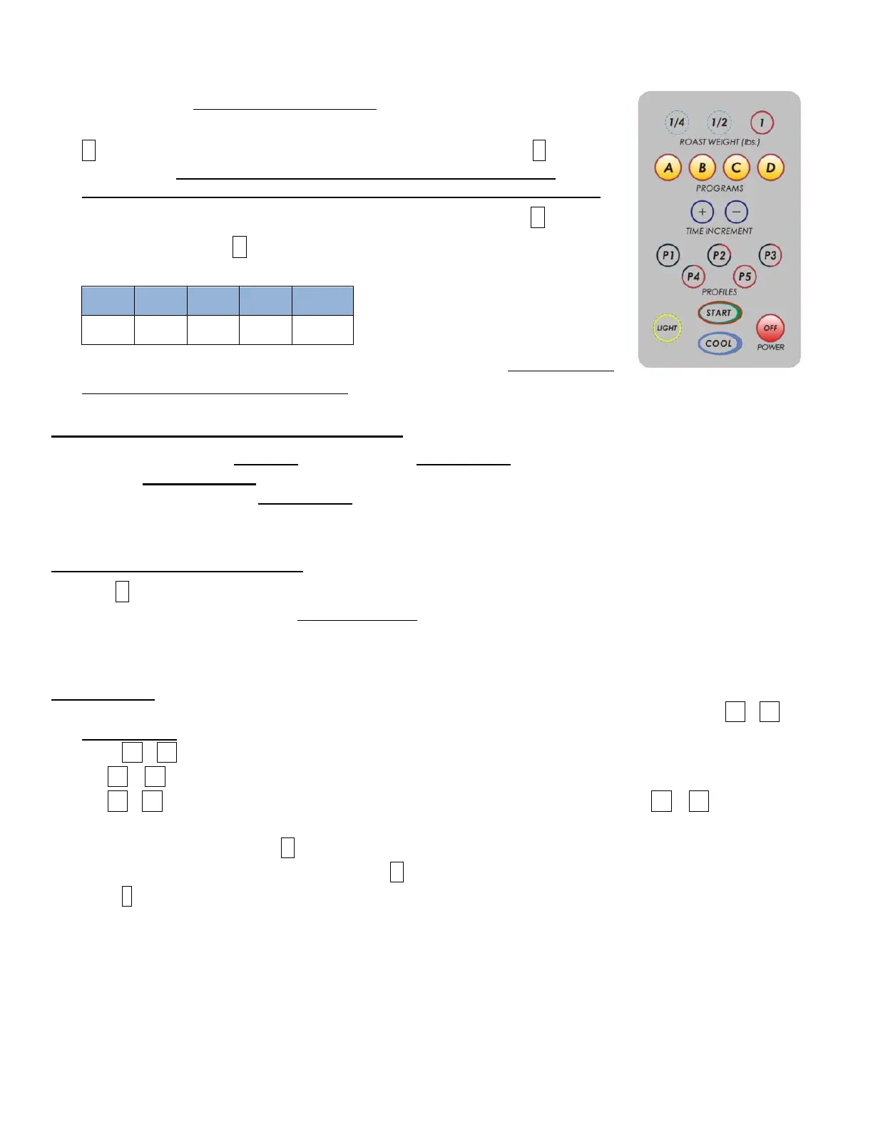 Begin a roast (Weight – desired, then Press Start), once a roast has begun at any point press either P1 - P5 to go