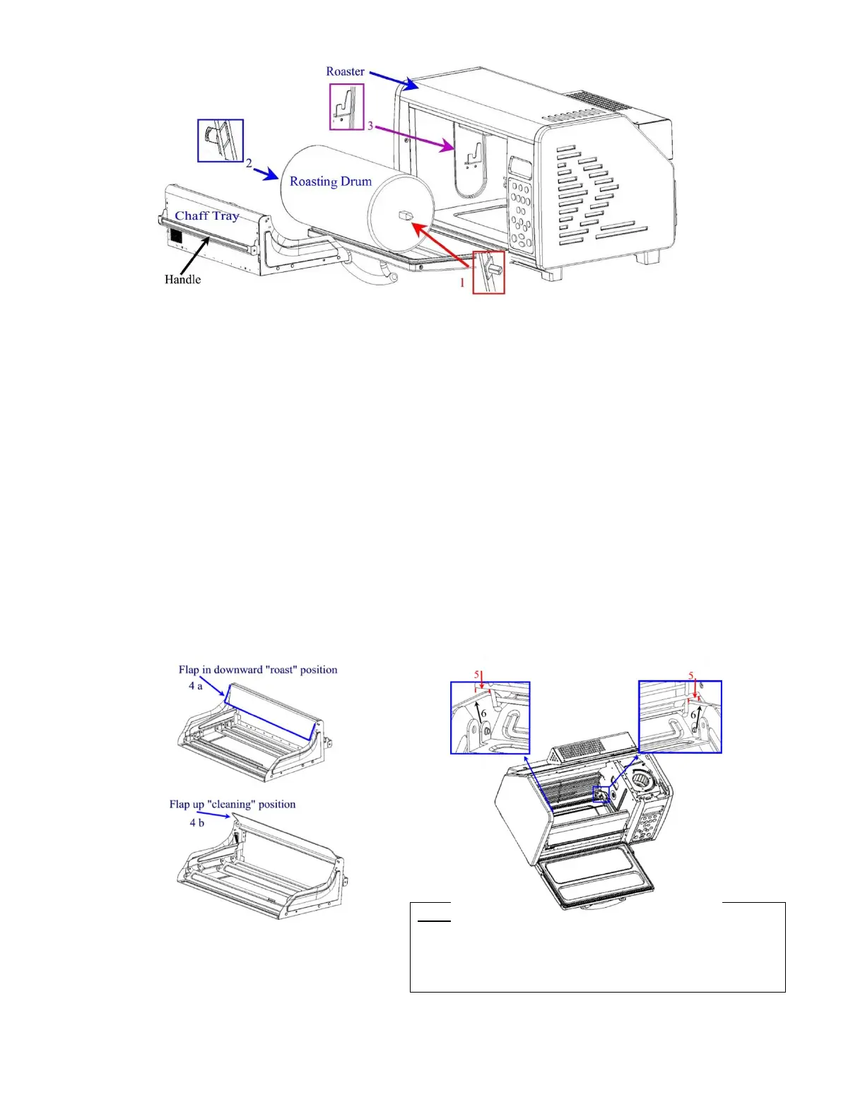 tray out of the chamber. Swing the flap up (shown below in 4b) from its “roast” position (4a) to allow the tray