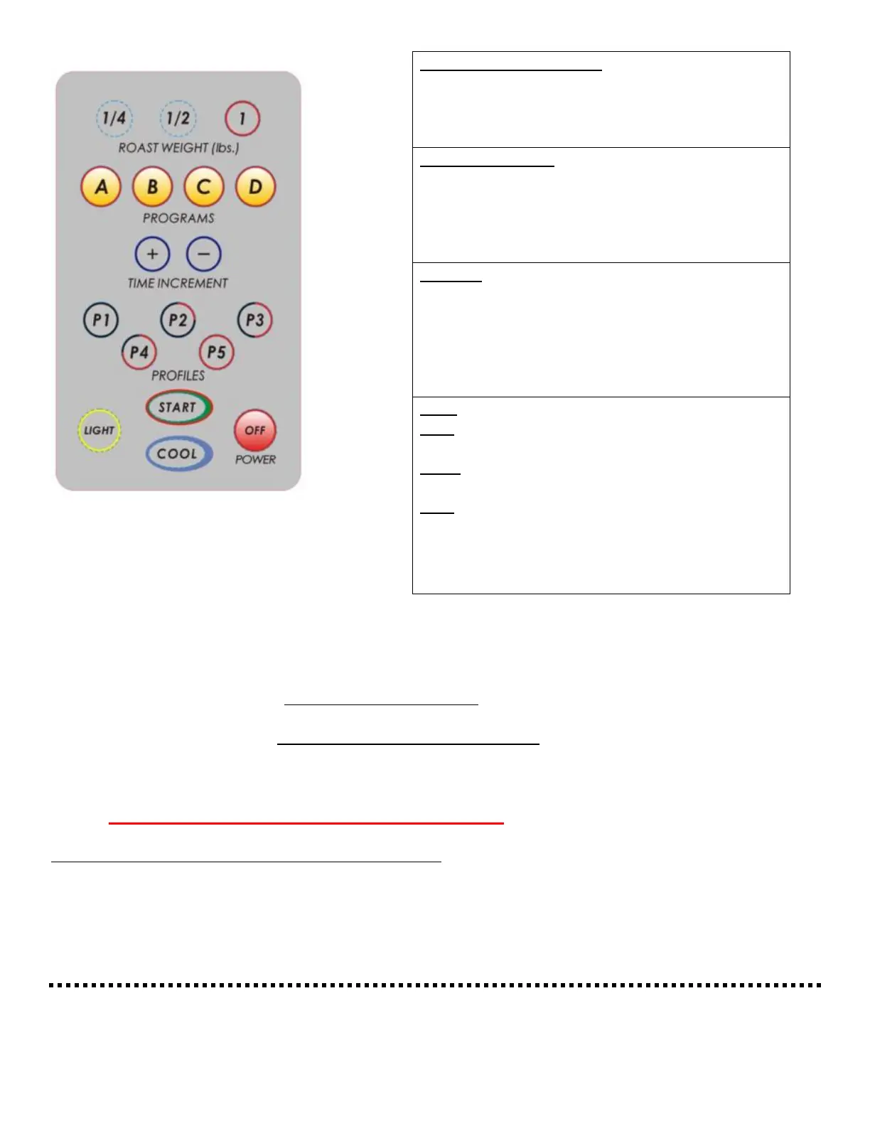 OFF: Shuts off the roaster. Do not press OFF during