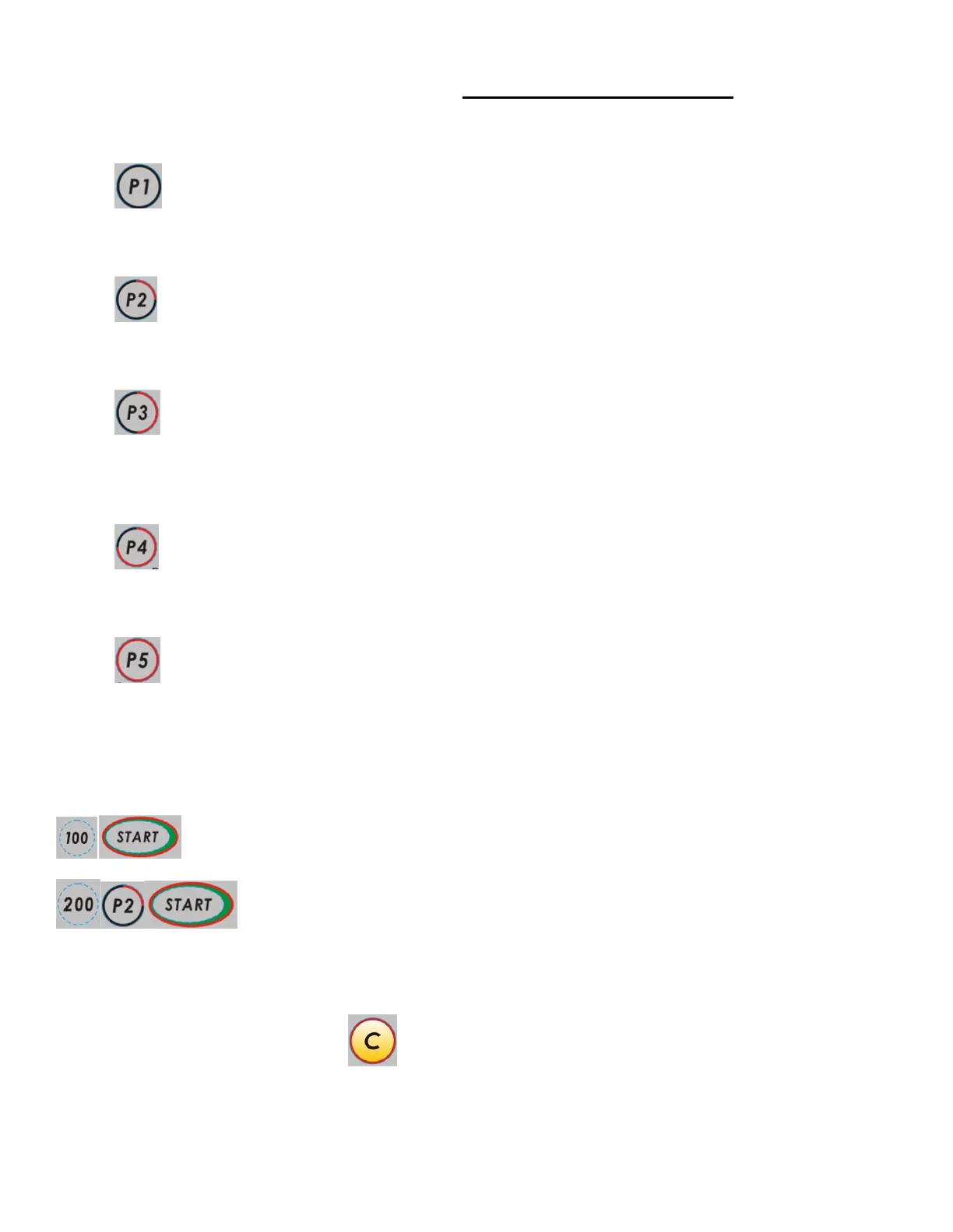 Press appropriate weight button (100, 200 or 400), then press P2 button, then press Start button