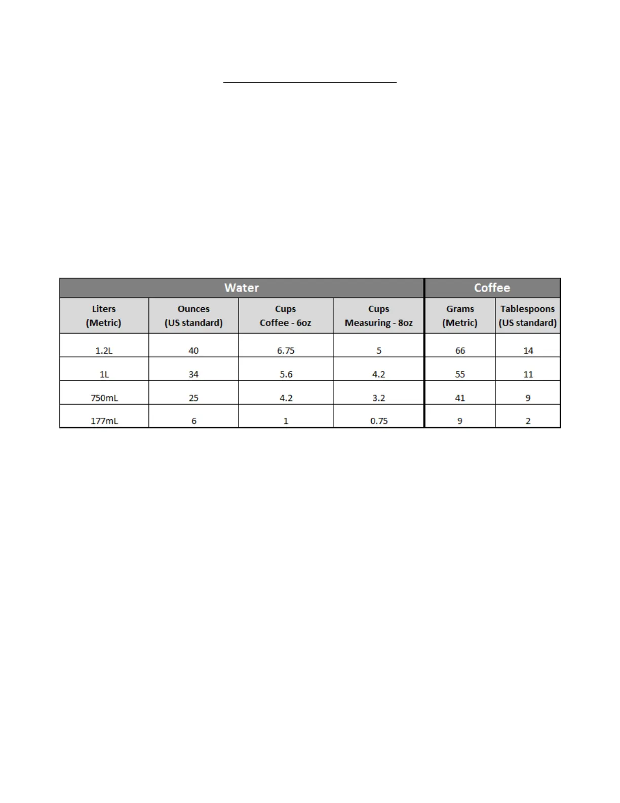 coffee dosage for various volumes of brewed coffee. In its simplest form, Gold Cup ratio is 2