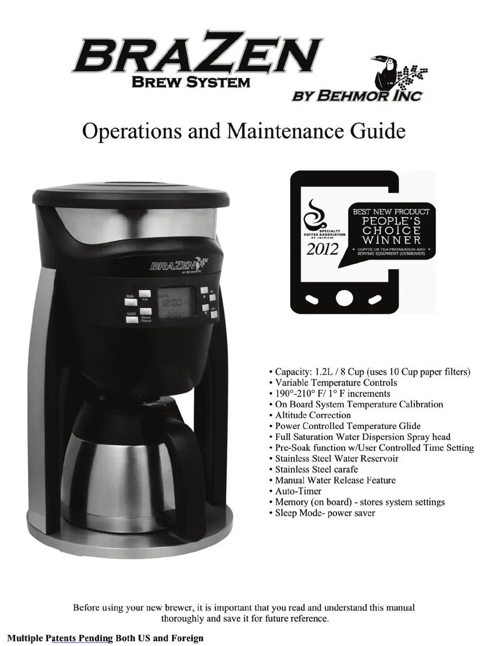If your Behmor Coffee Maker's coffee basket overflows, it could be due to two reasons. First, ensure the carafe is in place during brewing. Second, the filter might be clogged; try using a coarser ground coffee or, if you're using the metal filter, switch to a cloth or paper filter.