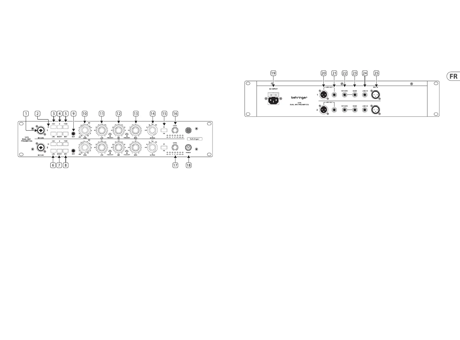 16. LEVEL – Pour obtenir le niveau de gain maximum indiqué, le potentiomètre LEVEL doit être au maximum (0 dBu en entrée, 0 dBu en