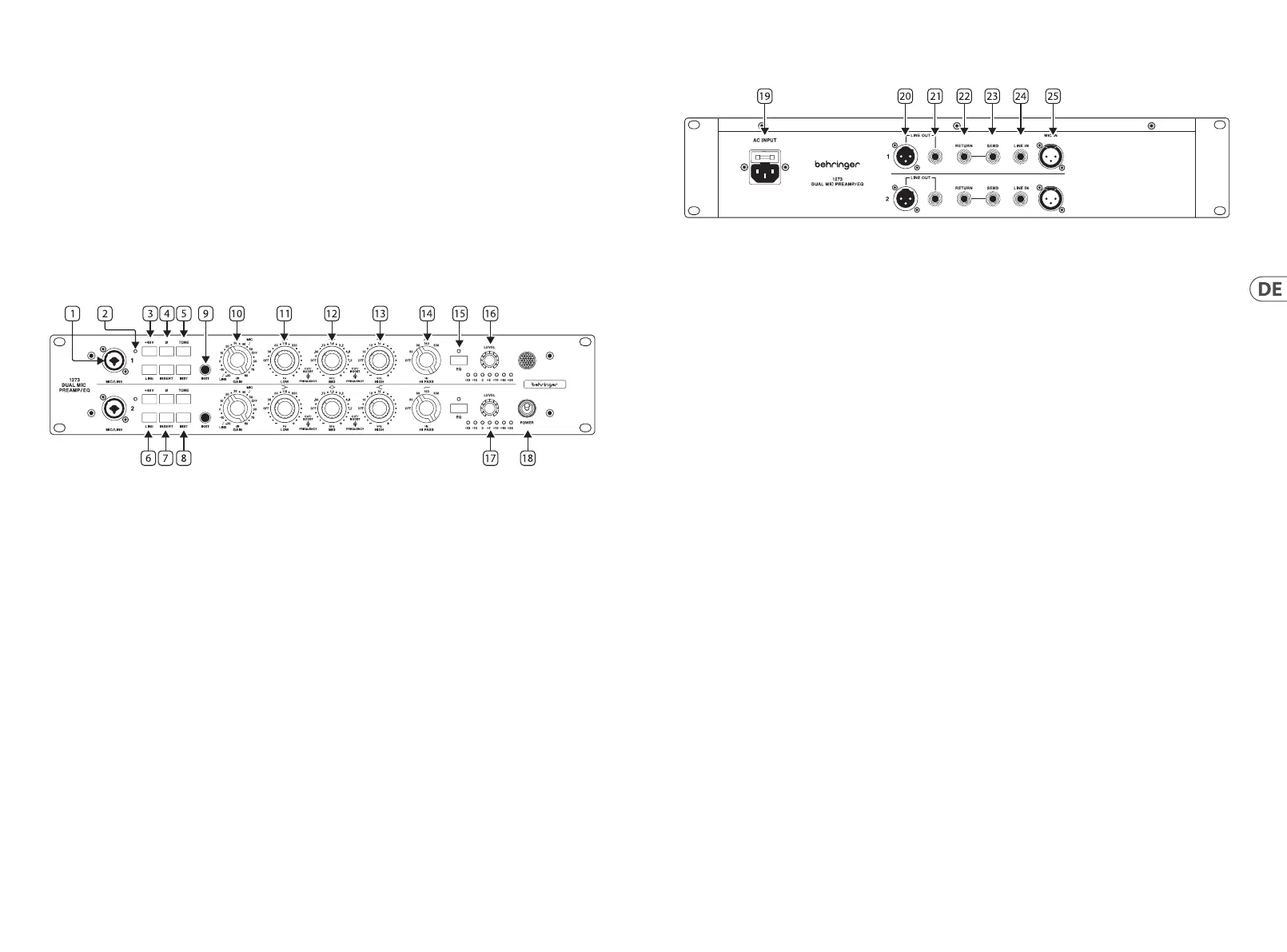 23. SEND – Insert Send via 6,3 mm TS-Eingang für Line-Pegel-Geräte.