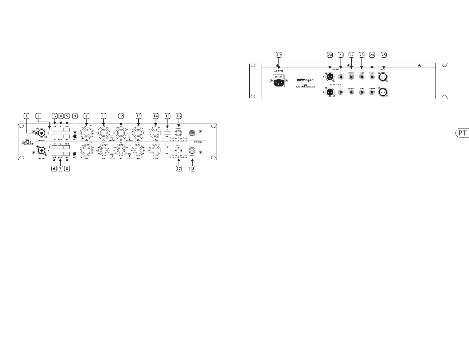 21. LINE OUT TRS – conexões de saída TRS de ¼" para equipamentos de linha. Sinais não balanceados também podem ser conectados