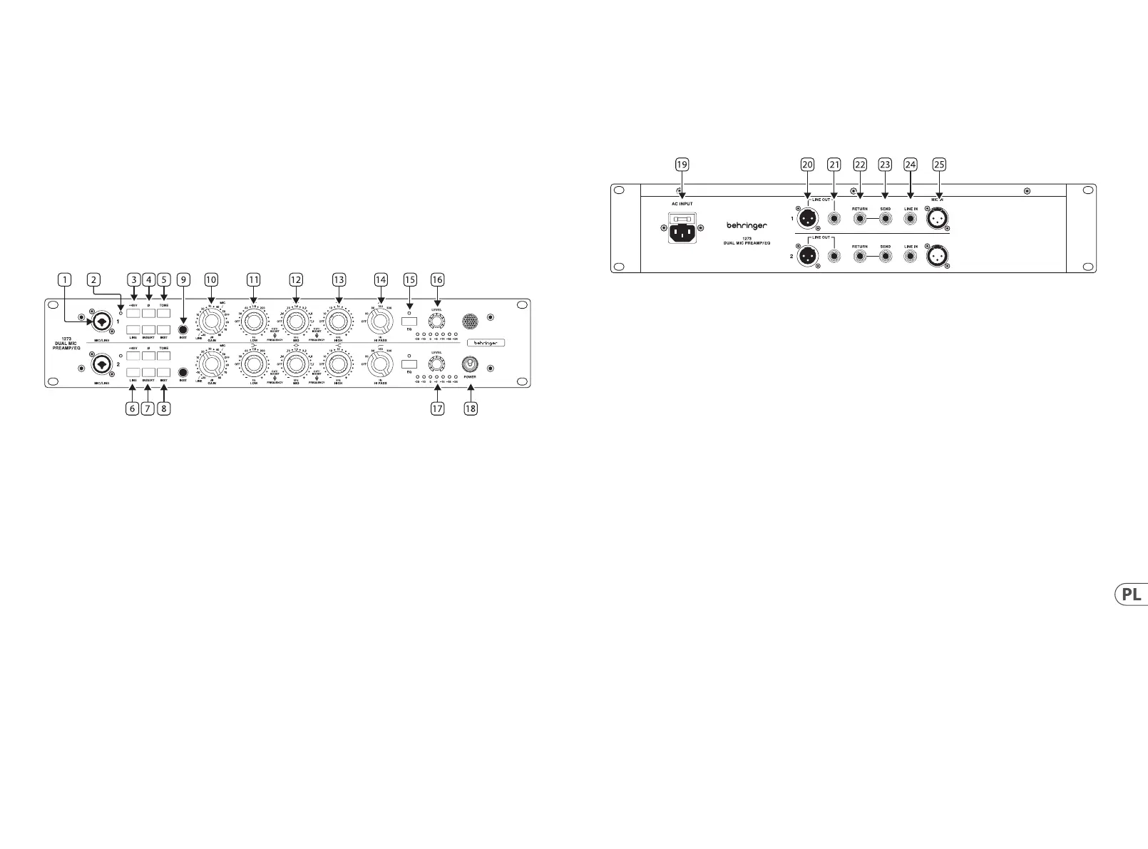 16. OUTPUT LEVEL – Aby osiągnąć pełny poziom wzmocnienia jak wskazano na przełączniku Gain, poziom musi zostać ustawiony na