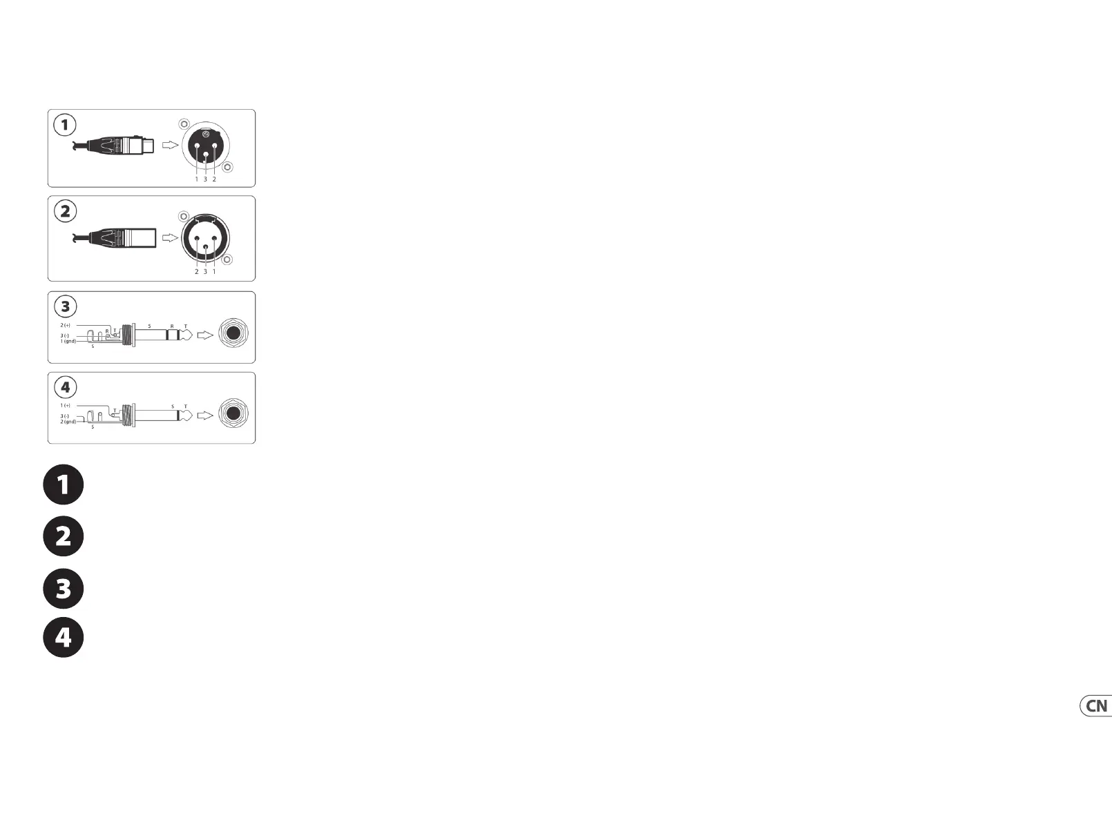 为确保设备正确可靠运行, 只应使用高质量的平衡、 屏蔽、 双绞线音频电缆。 XLR 和 ¼ 寸连接器外皮应为金属结构,