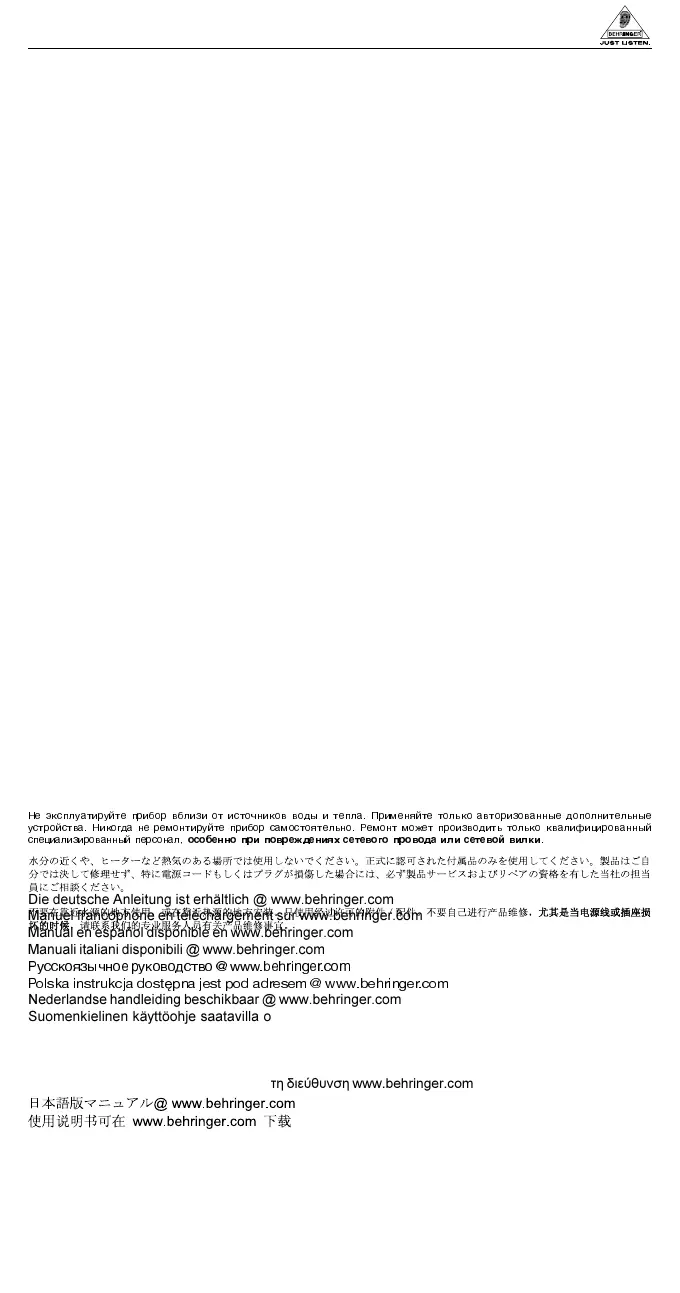 Ðóññêîÿçû÷íîåðóêîâîäñòâî@www.behringer.com