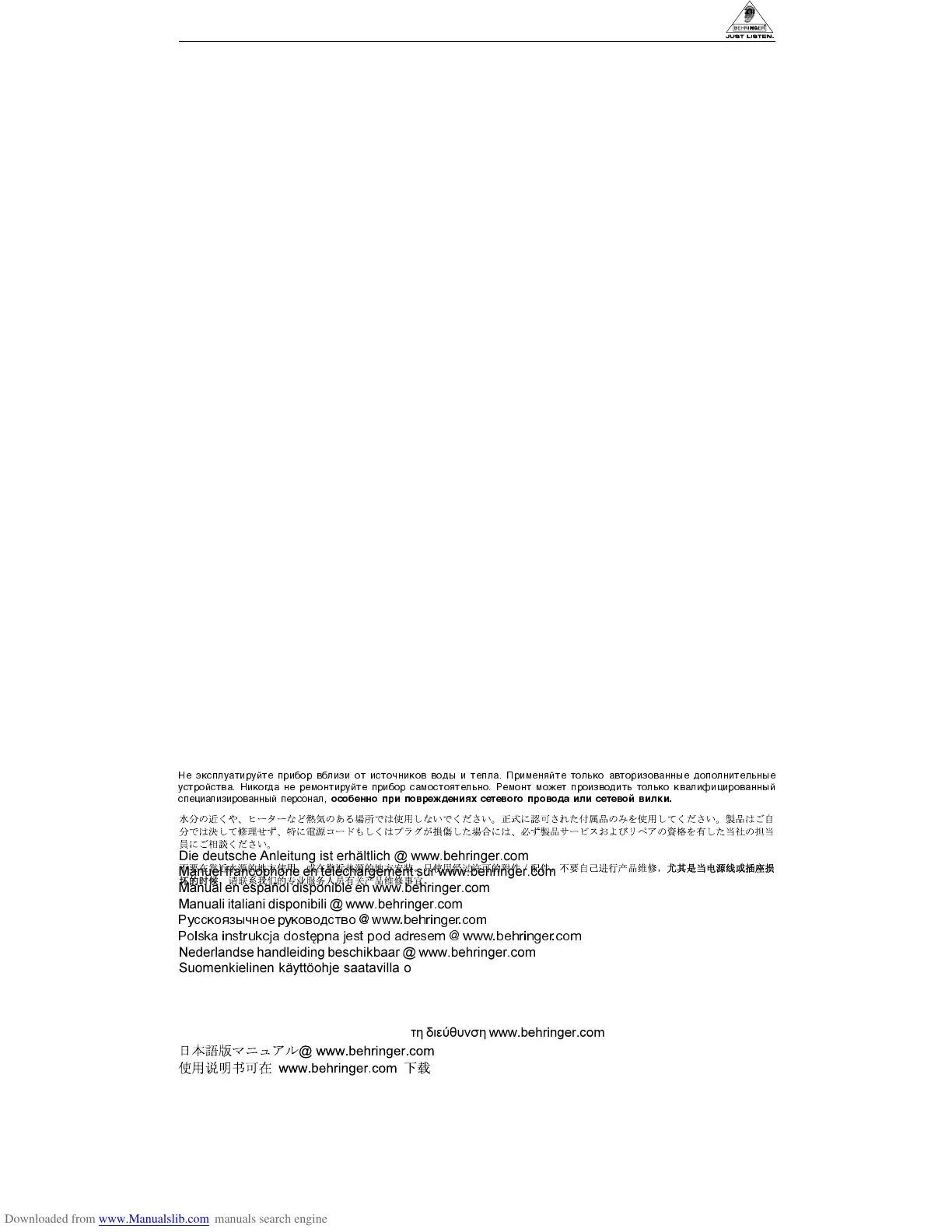 Ðóññêîÿçû÷íîåðóêîâîäñòâî@www.behringer.com
